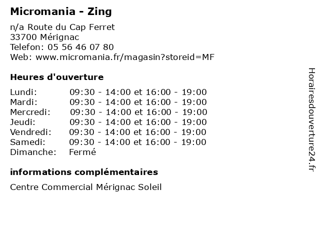 | Mercredi | 09:30-14:00 et 16:00-19:00 |