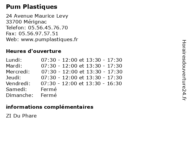 1 Pum Plastiques (Distance: 10,05 km) - Avenue Roger Lapebie, 33140 Villenave d'Ornon agences, conseils, outillage, plastique, plastiques, pum, pum plastique, spécialiste 2 Pum Plastiques (Distance: 15,25 km) 48 Avenue de Branne, 33370 Tresses agences, conseils, outillage, plastique, plastiques, pum, pum plastique, spécialiste 3 Société des Plastiques Brenez (SPB) (Distance: 9,70 km) - Chemin Auguste, 33610 Cestas accessoires, bidons, brenez, des, flacons, pièces techniques, plastiques, société, spb 4 HYDRALIANS DC PLASTIQUES Bordeaux (Distance: 11,33 km) 16 Rue René Magne, 33000 Bordeaux bordeaux, dc, hydralians, plastiques 5 HYDRALIANS DC PLASTIQUES Bègles (Distance: 12,77 km) Rue Charles Tellier, 33130 Bègles bègles, dc, hydralians, plastiques 6 Matisa (Distance: 5,46 km) 225 avenue marcel dassault, 33700 Mérignac 'emballages, fabrication, matisa, matières, plastiques |