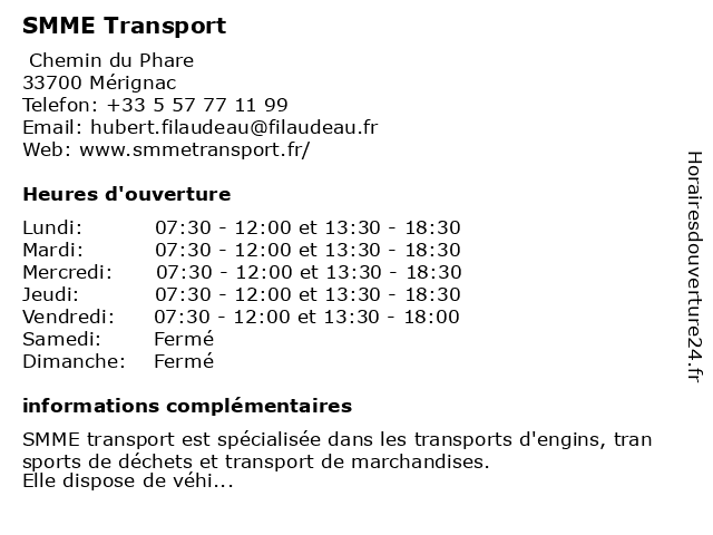 | Lundi | 07:30-12:00 et 13:30-18:30 |