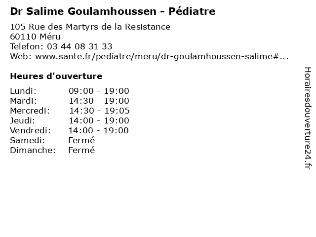 1 Dr Salime Goulamhoussen - Pédiatre (Distance: 15,15 km) 25 rue Edmond Turcq, 95260 Beaumont-sur-Oise beaumont, bebe, carnelle, de, dr, ghcpo, goulamhoussen, groupe, hospitalier, l'oise, nourisson, oise, portes, pédiatre, pédiatrie, salime, sur 2 Dr Kathleen Boyle - Pédiatre (Distance: 11,09 km) 31 place de l'église, 60230 Chambly boyle, dr, enfant, kathleen, medecin, pediatre, pédiatre, soins 3 Dr Brigitte David-Brocard - Pédiatre (Distance: 11,09 km) 31 Place de l'Église, 60230 Chambly brigitte, brocard, david, docteur, dr, generaliste, medical, pédiatre, soin 4 Dr Bassam Richet - Pédiatre (Distance: 14,08 km) 3 Chemin des Trois Sources, 95290 L'Isle-Adam bassam, consultation, docteur, dr, med, médecin, médecine, pédiatre, richet, secrétariat, traitement 5 Dr Mohamed Nabil Bentchikou - Pédiatre (Distance: 15,15 km) 25 rue Edmond Turcq, 95260 Beaumont-sur-Oise beaumont, bebe, bentchikou, carnelle, de, dr, ghcpo, groupe, hospitalier, l'oise, mohamed, nabil, nourisson, oise, portes, pédiatre, pédiatrie, sur 6 Dr Daniela Grigorescu - Pédiatre (Distance: 15,15 km) 25 rue Edmond Turcq, 95260 Beaumont-sur-Oise beaumont, bebe, carnelle, daniela, de, dr, ghcpo, grigorescu, groupe, hospitalier, l'oise, nourisson, oise, portes, pédiatre, pédiatrie, sur |