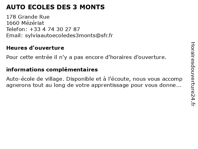 | Appeler AUTO ECOLES DES 3 MONTS | |