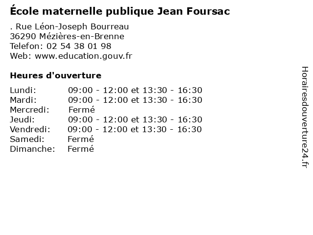 Lundi | 09:00-12:00 et 13:30-16:30 |