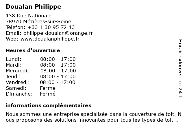 | Lundi | 08:00-17:00 |