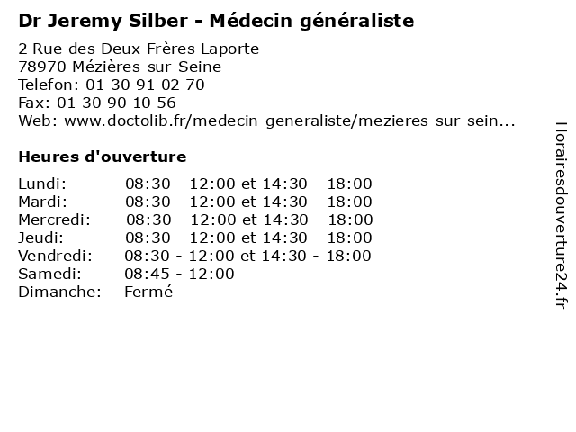 | Lundi | 08:30-12:00 et 14:30-18:00 |