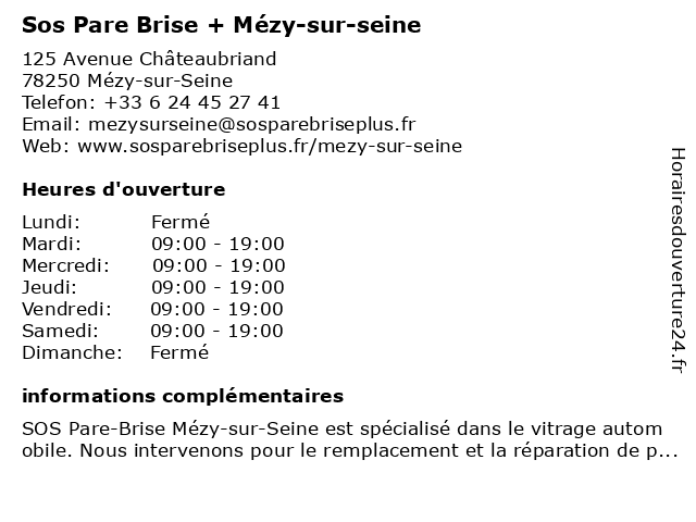 1 SOS Pare-Brise (Distance: 1,52 km) 125 Avenue de Châteaubriand, 78250 Mézy-sur-Seine auto, brise, pare, phare, remplacement, rénovation, réparation, sos, vitrage, véhicule 2 Rapid Pare-Brise (Distance: 1,97 km) - village, 78410 Aubergenville accessoires, brise, motos, pare, pare-brise, rapid, voitures 3 Dvs-Serpev - Groupe SOS (Distance: 2,09 km) - Route Renault, 78410 Flins-sur-Seine aménagement, dvs, entreprise, espaces, flins-sur-seine, groupe, serpev, sos, terrains, vrd 4 Mondial Pare-Brise (Distance: 3,02 km) 6, avenue des Etangs Prés, 78250 Hardricourt brise, centers, machinery, mondial, optical headlight wipers, pare, rear window, repair, services, side, technical, vehicle, windows, windshield 5 Rapid Pare-Brise (Distance: 9,43 km) 18 Rue de la Grosse Pierre, 78540 Vernouillet automobile, brise, pare, pare-brise, rapid, remplacement, réparation, vitrage, voiture 6 Mondial Pare-Brise (Distance: 12,57 km) 218 boulevard du Maréchal Juin, 78200 Mantes La Jolie brise, centers, machinery, mondial, optical headlight wipers, pare, rear window, repair, services, side, technical, vehicle, windows, windshield |