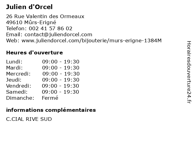 1 Julien d'Orcel (Distance: 7,73 km) 75 avenue Montaigne, 49000 Angers angers, bijouterie, bijoux, bracelets, d'orcel, horlogerie, julien 2 Julien Ménard - Orthopédiste-orthésiste (Distance: 5,26 km) 150 Avenue de Lattre de Tassigny, 49000 Angers julien, ménard, orthopedie, orthopédique, orthopédiste, orthésiste, trauma, traumatologie, traumatologique 3 Maître Julien Roux - Avocat (Distance: 8,27 km) 16 rue des Deux-Haies, 49100 Angers avocat, droit, julien, juridictionnelle, maître, négociation, roux 4 Maître Julien Piednoir - Avocat (Distance: 8,69 km) 40 boulevard Ayrault, 49100 Angers avocat, droit, julien, juridictionnelle, maître, négociation, piednoir 5 Julien Carpentier - Ostéopathe (Distance: 8,70 km) 3 Square Georges Pompidou, 49100 Angers carpentier, julien, ostéo, ostéopathe, ostéopathes, soins 6 Julien Furber - Masseur-kinésithérapeute (Distance: 8,92 km) 2 Square de la Penthière, 49000 Angers consultation, docteur, furber, julien, kinésithérapeute, masseur, med, médecin, traitement |