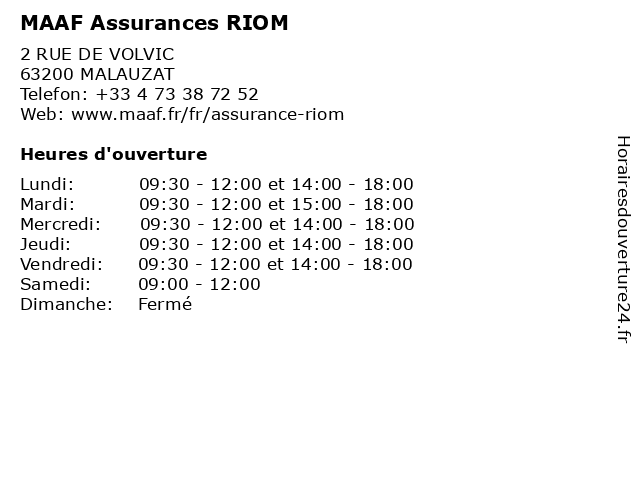 Lundi | 09:30-12:00 et 14:00-18:00 |