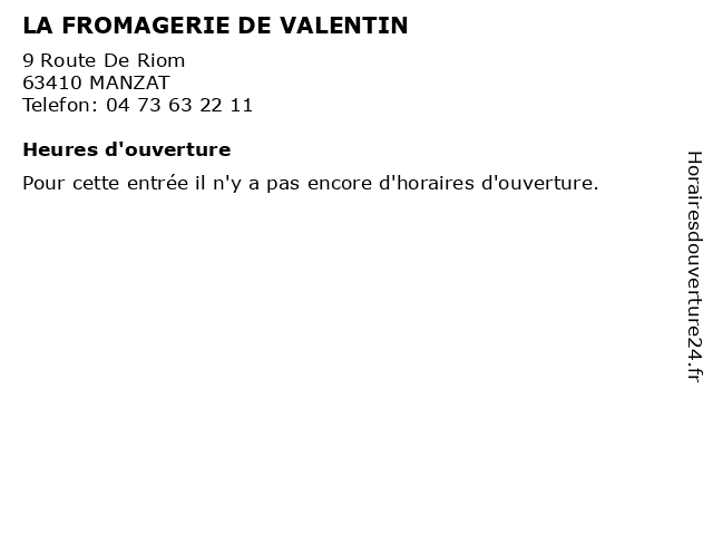 | Appeler LA FROMAGERIE DE VALENTIN | |