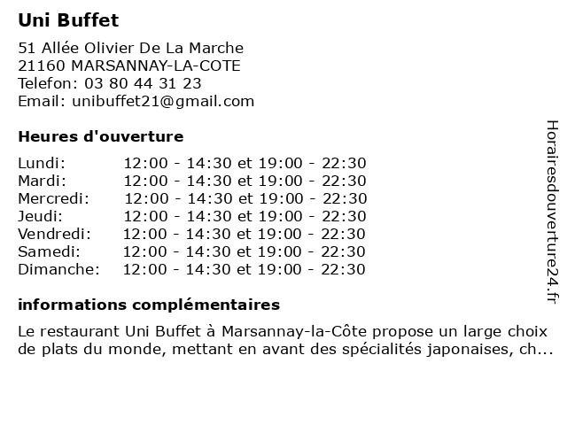 | Mardi | 12:00-14:30 et 19:00-22:30 |