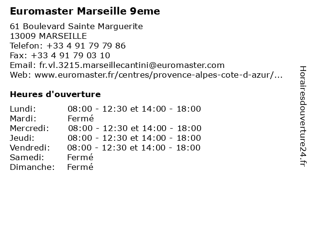 | Lundi | 08:00-12:30 et 14:00-18:00 |