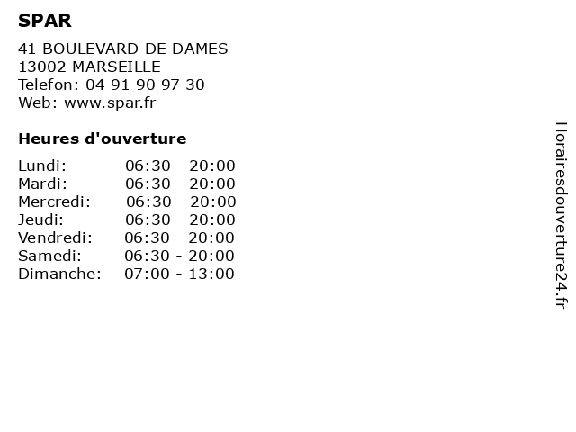 | Samedi | 06:30-20:00 |