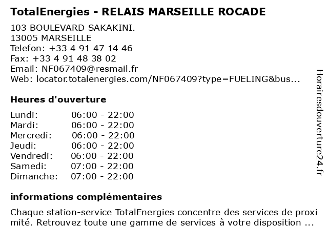 Termes de recherche pour TotalEnergies - RELAIS MARSEILLE ROCADE:relais, marseille, total, rocade, gas station, station service, tankstelle, totalenergies |