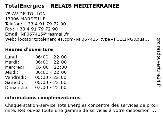 Termes de recherche pour TotalEnergies - RELAIS MEDITERRANEE:relais, total, méditerranée, gas station, station service, tankstelle, totalenergies |
