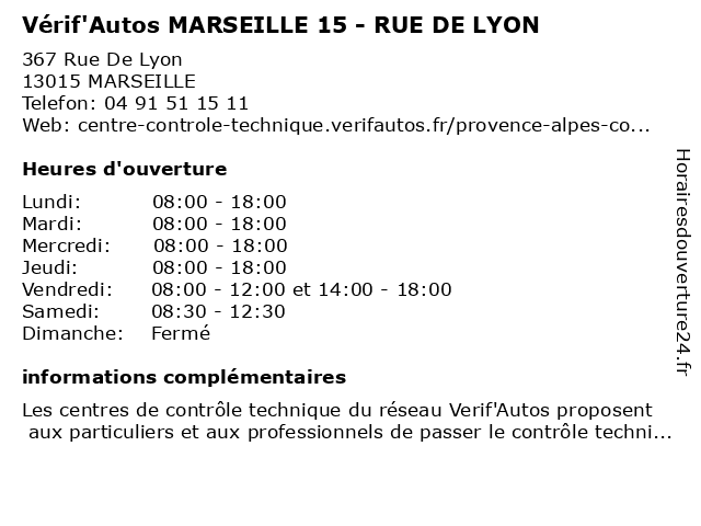 Termes de recherche pour Vérif'Autos MARSEILLE 15 - RUE DE LYON:de, lyon, marseille, rue, 15, verif'autos |