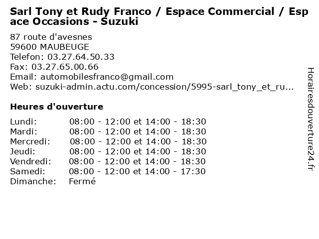 Termes de recherche pour Sarl Tony et Rudy Franco / Espace Commercial / Espace Occasions - Suzuki:et, espace, concessionnaire automobile, de l'automobile, du service, pièces, commercial, sarl, occasions, suzuki, franco, rudy, tony |