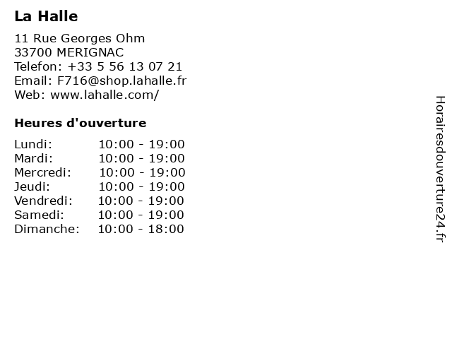 | Mercredi | 10:00-19:00 |