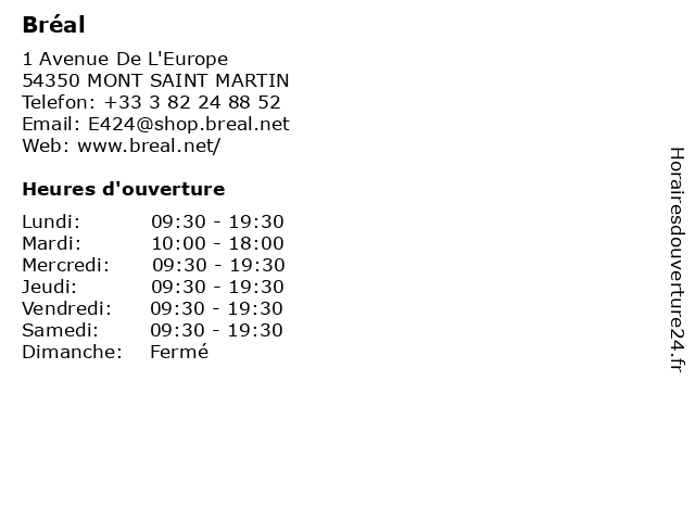 | Lundi | 09:30-19:30 |