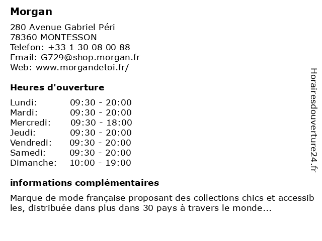 1 Morgan (Distance: 8,32 km) n/a rue gambetta, 92800 Puteaux accessoires, chaussures, jeans, maroquinerie, morgan, sandales 2 Morgan (Distance: 11,13 km) 2 Avenue Charles De Gaulle, 78150 LE CHESNAY blazer femme, cardignan femme, chaussures femme, gilet femme, jean femme, magasin femme, magasin vêtements, manteau femme, mode femme, morgan, pull femme, robe femme, sac femme, t-shirt femme, tailleur femme, top femme, vêtements femmes 3 Morgan (Distance: 11,31 km) Centre Commercial Parly Ii, 78150 Le Chesnay accessoires, cafan, divers, habillement, magasins, morgan 4 Morgan (Distance: 12,85 km) . Place du 11 novembre 1918, 75010 Paris cafe, chaussures, enfants, homme, lingerie, mode femme, morgan, restaurant, service, shopping 5 Morgan (Distance: 12,82 km) n/a Rue de la Croix des Maheux, 95000 Cergy beauté, boutiques, déco, enfants, mode, mode femme, morgan, shopping 6 |