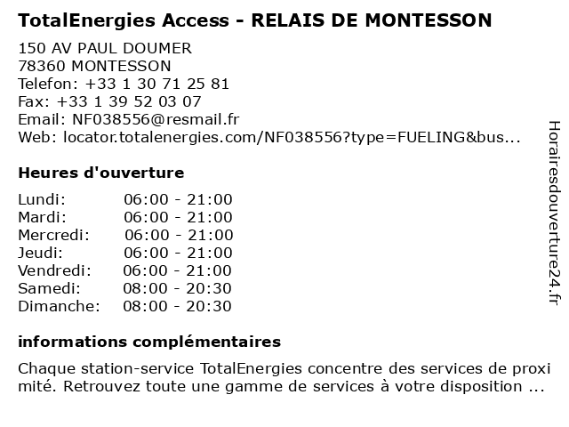Termes de recherche pour TotalEnergies Access - RELAIS DE MONTESSON:relais, de, montesson, access, total, gas station, station service, tankstelle, totalenergies |