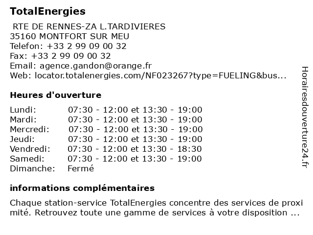 | Lundi | 07:30-12:00 et 13:30-19:00 |