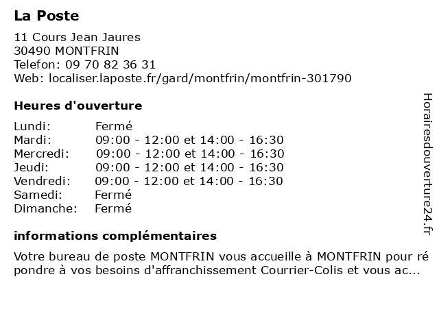 | Mardi | 09:00-12:00 et 14:00-16:30 |