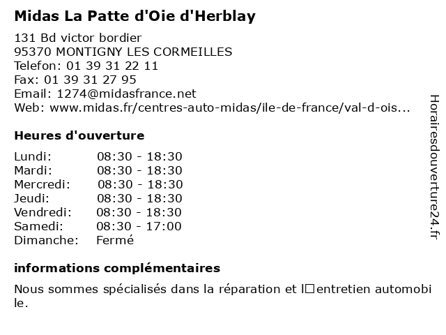 Termes de recherche pour Midas La Patte d'Oie d'Herblay:la, midas, patte, d'herblay, d'oie, atelier de réparation automobile, service de climatisation automobile, magasin de pièces automobiles |