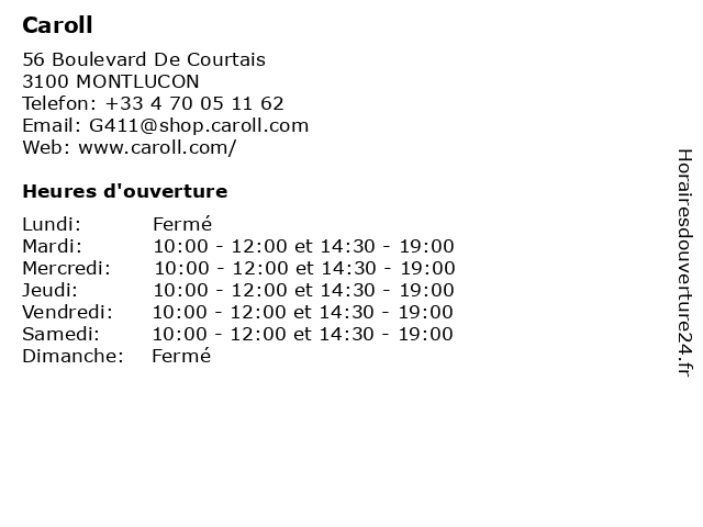 | Lundi | Fermé |
