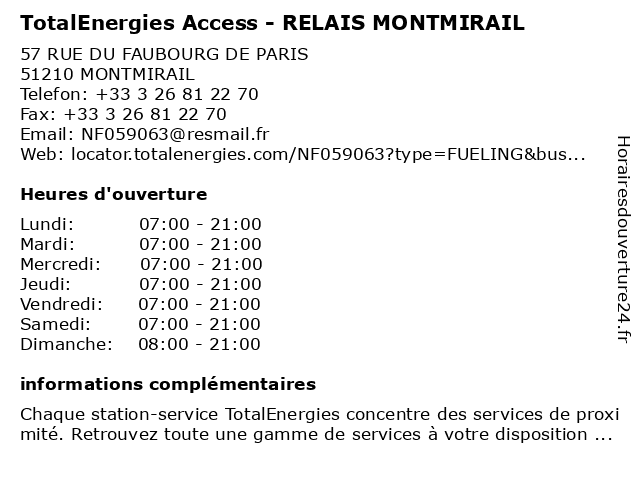 Termes de recherche pour TotalEnergies Access - RELAIS MONTMIRAIL:relais, montmirail, access, total, gas station, station service, tankstelle, totalenergies |