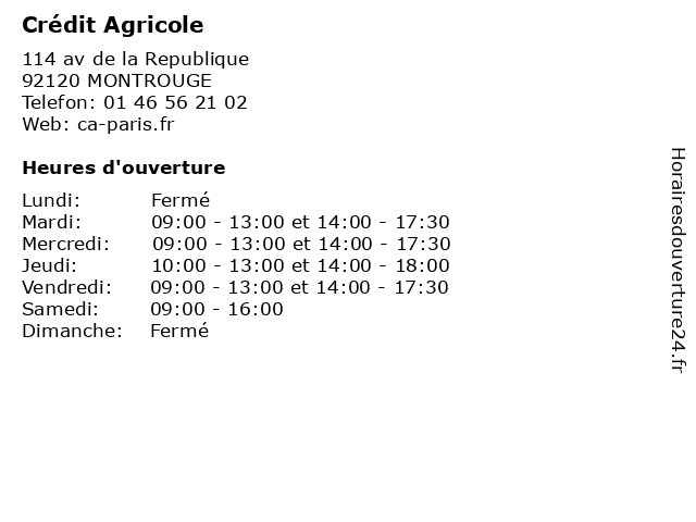 1 Crédit Agricole (Distance: 0,60 km) 83-85 Rue Gabriel Péri, 92120 Montrouge agence, agricole, assurance, bancaire, banque, crédit 2 Crédit Agricole (Distance: 2,17 km) 1 av de Paris, 92320 Chatillon agricole, credit, crédit, du, l'argent, l'épargne, le crédit, les banques, les prêts, nord 3 Crédit Agricole (Distance: 2,41 km) 61 Rue Charles Frérot, 94250 Gentilly agence, agricole, assurance, bancaire, banque, crédit 4 Crédit Agricole (Distance: 3,21 km) 235 Avenue Victor Hugo, 92140 Clamart agence, agricole, assurance, bancaire, banque, crédit 5 Crédit Agricole (Distance: 3,63 km) 74 Avenue du Général Leclerc, 92340 Bourg-la-Reine agence, agricole, assurance, bancaire, banque, crédit 6 Crédit Agricole (Distance: 3,73 km) 80 Rue de Sèvres, 75007 Paris agence, agricole, assurance, bancaire, banque, crédit |