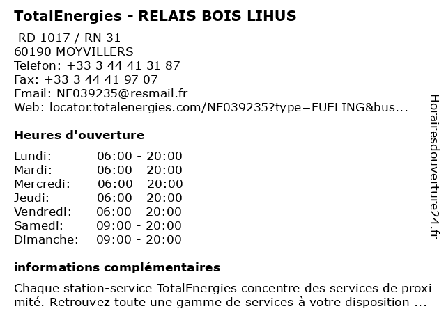 Termes de recherche pour TotalEnergies - RELAIS BOIS LIHUS:relais, bois, total, lihus, gas station, station service, tankstelle, totalenergies |