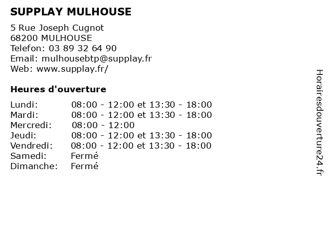 | Lundi | 08:00-12:00 et 13:30-18:00 |