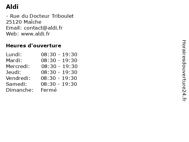 1 ALDI (Distance: 0,08 km) Rue du Docteur Triboulet, 25120 Maîche aldi, aldi près de moi, courses près de moi, magasin, magasin discount, magasin discount près de moi, supermarché, supermarché près de moi, supermarchés, supermarchés près de moi, épicerie, épicerie près de chez moi 2 Aldi (Distance: 23,68 km) 30 Rue de Berne, 25230 Seloncourt aldi, alimentaire, alimentation, supermarché, supérette, épicerie 3 Aldi (Distance: 27,53 km) - Rue de la Combe Rosiers, 25250 L'Isle-sur-le-Doubs aldi, alimentaire, alimentation, supermarché, supérette, épicerie 4 ALDI (Distance: 29,13 km) 46 Route de Besançon, 2530 Doubs aldi, commerce de détail, de l'industrie, internationale, épicerie 5 Aldi (Distance: 30,59 km) - Route d'Héricourt, 25200 Bethoncourt aldi, alimentaire, alimentation, supermarché, supérette, épicerie 6 Aldi (Distance: 43,35 km) - Boulevard Kennedy, 90000 Belfort aldi, commerce de détail, de l'industrie, internationale, épicerie |