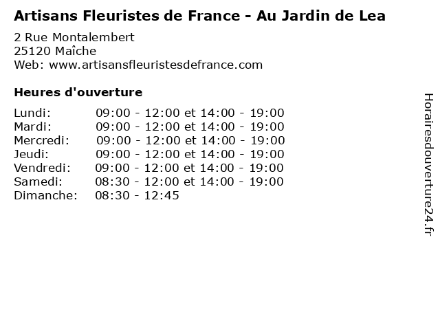 | Samedi | 08:30-12:00 et 14:00-19:00 |