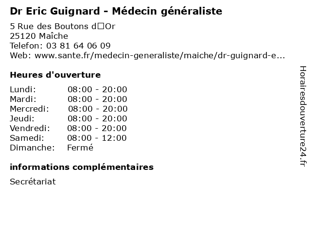| Vendredi | 08:00-20:00 |