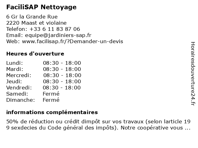 | Lundi | 08:30-18:00 |