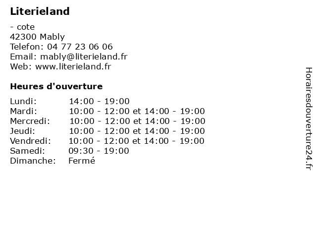 | Mardi | 10:00-12:00 et 14:00-19:00 |