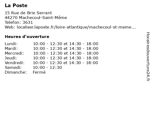 2 La Poste (Distance: 6,49 km) 24 Rue des Fossés, 44270 La Marne colis, express chronopost, expédition, la, poste, réexpédition internationale, service, suivi du courrier 3 La Poste (Distance: 9,49 km) 1 Rue des Vallées, 44270 Saint-Étienne-de-Mer-Morte colis, express chronopost, expédition, la, poste, réexpédition internationale, service, suivi du courrier 4 La Poste (Distance: 11,45 km) 1 Place de la Mairie, 85710 La Garnache agence, assurance, banque, banque postale, bureau de poste, chronopost, colis, courrier, dps, expéditions internationales, la, point, postale, poste, relais, timbres, téléphonie, ups, western union 6 La Poste (Distance: 12,45 km) 20 Rue de la Mairie, 44680 Saint-Hilaire-de-Chaléons colis, express chronopost, expédition, la, poste, réexpédition internationale, service, suivi du courrier |