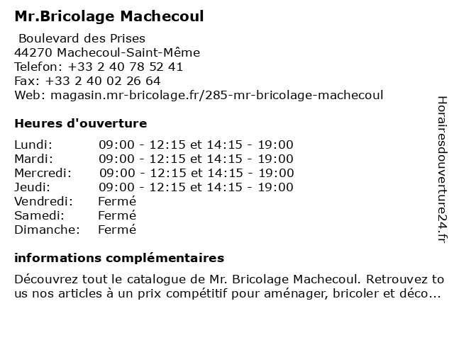 Termes de recherche pour Mr.Bricolage Machecoul:machecoul, mr.bricolage |