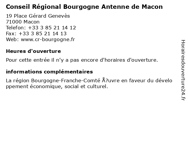 | Appeler Conseil Régional Bourgogne Antenne de Macon | |