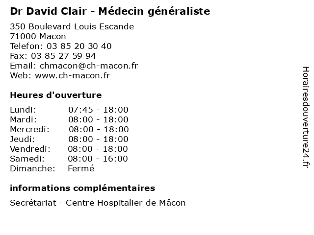 | Lundi | 07:45-18:00 |