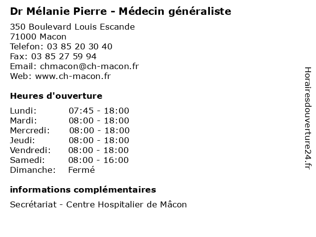| Lundi | 07:45-18:00 |