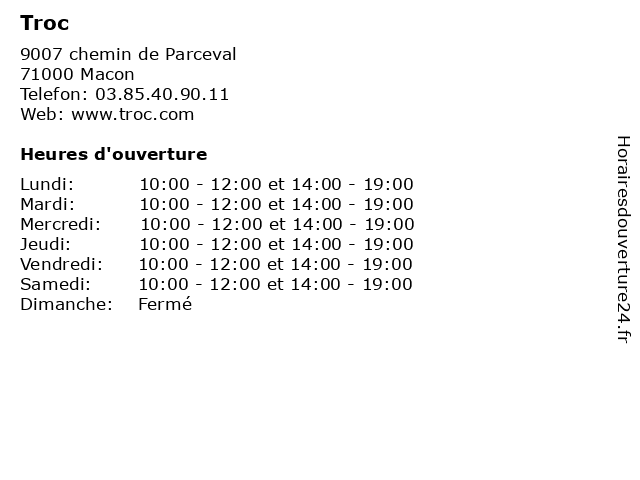 | Mardi | 10:00-12:00 et 14:00-19:00 |