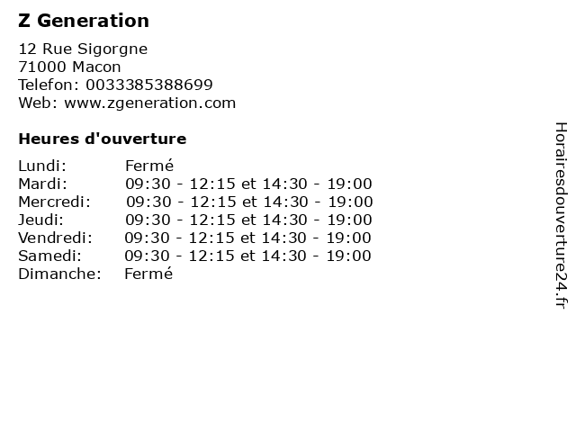 | Samedi | 09:30-12:15 et 14:30-19:00 |
