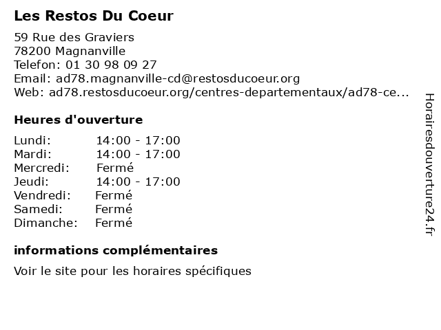 1 Les Restos Du Coeur (Distance: 2,06 km) 254 boulevard Maréchal Juin, 78200 Mantes la Jolie aides, alimentaire, coeur, du, les, restos, santé, solidarité, soutien 2 Les Restos Du Coeur (Distance: 4,37 km) 4 rue Auguste Delaune, 78520 Limay aides, alimentaire, coeur, du, les, restos, santé, solidarité, soutien 3 Les Restos Du Coeur (Distance: 10,33 km) - Rue du Moulin de Pierre, 78270 Bonnières-sur-Seine aides, alimentaire, coeur, du, les, restos, santé, solidarité, soutien 4 Les Restos Du Coeur (Distance: 16,21 km) 6 Rue Maryse Bastié, 78130 Les Mureaux aides, alimentaire, coeur, du, les, restos, santé, solidarité, soutien 5 Les Restos Du Coeur (Distance: 18,43 km) 7 Rue des Carreaux, 27200 Vernon aides, alimentaire, coeur, du, les, restos, santé, solidarité, soutien 6 Les Restos Du Coeur (Distance: 19,63 km) 4 Rue de l'Estandart, 78650 Beynes aides, alimentaire, coeur, du, les, restos, santé, solidarité, soutien |