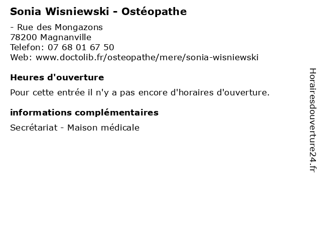 | Appeler Sonia Wisniewski - Ostéopathe | |