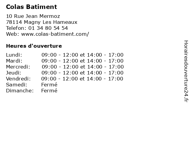 1 Colas (Distance: 0,01 km) 10 Rue Jean Mermoz, 78114 Magny-les-Hameaux bardage, colas, construction, désamiantage, route, travaux 2 Colas Bâtiment (Distance: 0,01 km) 10 Rue Jean Mermoz, 78771 Magny-les-Hameaux bâtiment, colas, conception, construction, entretien, public, réalisation, travaux 3 Colas (Distance: 10,44 km) 3 rue Camille Claudel, 78450 Villepreux colas, conception, construction, entretien, public, réalisation, travaux 4 Dr Edouard Colas - Ophtalmologue (Distance: 13,81 km) 14 Rue Pasteur, 91120 Palaiseau colas, dr, edouard, ophtalmologie, ophtalmologistes, ophtalmologue, vision 5 Dr Colas Marechal - Médecin généraliste (Distance: 15,33 km) 27 Rue de Sevres, 92100 Boulogne-Billancourt colas, consultation, docteur, dr, généraliste, marechal, med, médecin, traitement 6 Marie Colas de la Noue - Psychologue (Distance: 15,94 km) 93 Boulevard de la République, 92100 Boulogne-Billancourt colas, de, folie, la, marie, noue, psychiatre, psychiatrie, psychiatrique, psychologue |