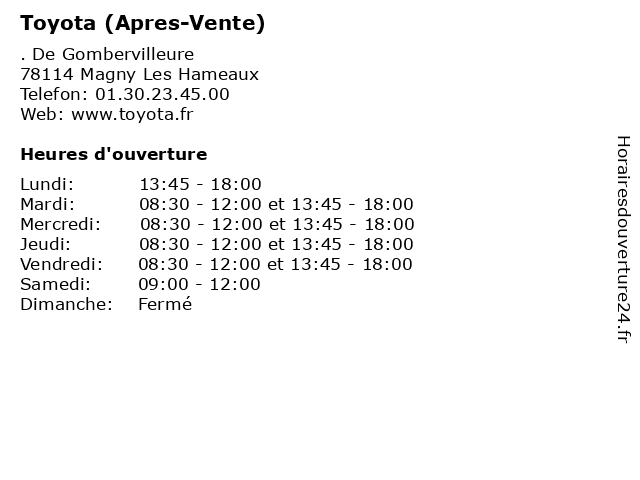 1 Toyota (Apres-Vente) (Distance: 4,48 km) . De Bordeaux, 24230 Velines apres, automobiles, concéssionnaire, garage, motos, toyota, vente 2 Toyota (Apres-Vente) (Distance: 10,77 km) 60 Rue De Versailles, 78150 Le Chesnay apres, automobiles, concéssionnaire, garage, motos, toyota, vente 3 Toyota (Apres-Vente) (Distance: 10,84 km) 6 Route Nationale, 78320 La Verriere apres, automobiles, concéssionnaire, garage, motos, toyota, vente 4 Toyota (Apres-Vente) (Distance: 12,12 km) . Avenue de la Plesse, 91140 Villebon Sur Yvette apres, automobiles, concéssionnaire, garage, motos, toyota, vente 5 Toyota (Apres-Vente) (Distance: 14,49 km) 5 Rue des Frères Lumière, 78370 Plaisir apres, automobiles, concéssionnaire, garage, motos, toyota, vente 6 Toyota (Apres-Vente) (Distance: 19,78 km) 24 Route de Mantes, 78240 Chambourcy apres, automobiles, concéssionnaire, garage, motos, toyota, vente |