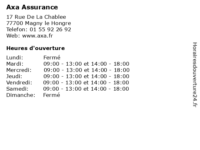 | Mardi | 09:00-13:00 et 14:00-18:00 |