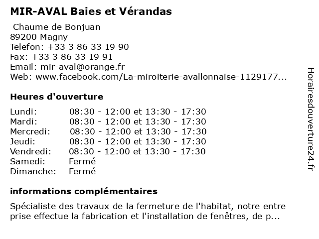 1 MIR-AVAL - Baies et Vérandas (Distance: 0,22 km) ZA de Bonjuan, 89200 Magny aluminium, aval, baies, et, menuiseries, mir, miroiterie, pvc, véranda, vérandas 2 CASÉO Auxerre (Distance: 48,05 km) 14 Rue Saint-Exupéry, 89470 Monéteau auxerre, baies vitrées, caséo, cuisinesfenetres, dressings, pergolas, placards, portails, portes, portes de garage, store bannes, volets 3 Akenas Vérandas (Distance: 48,06 km) 15 Allée Fontaine, 89000 Perrigny akenas, entretien, pergola, renovation, veranda, verandas, vérandas |
