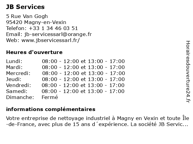 | Samedi | 08:00-12:00 et 13:00-17:00 |